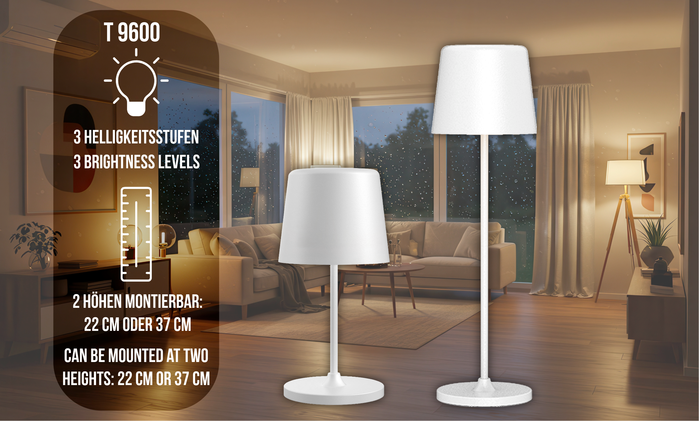 • 2 Höhen montierbar: 22 cm oder 37 cm
