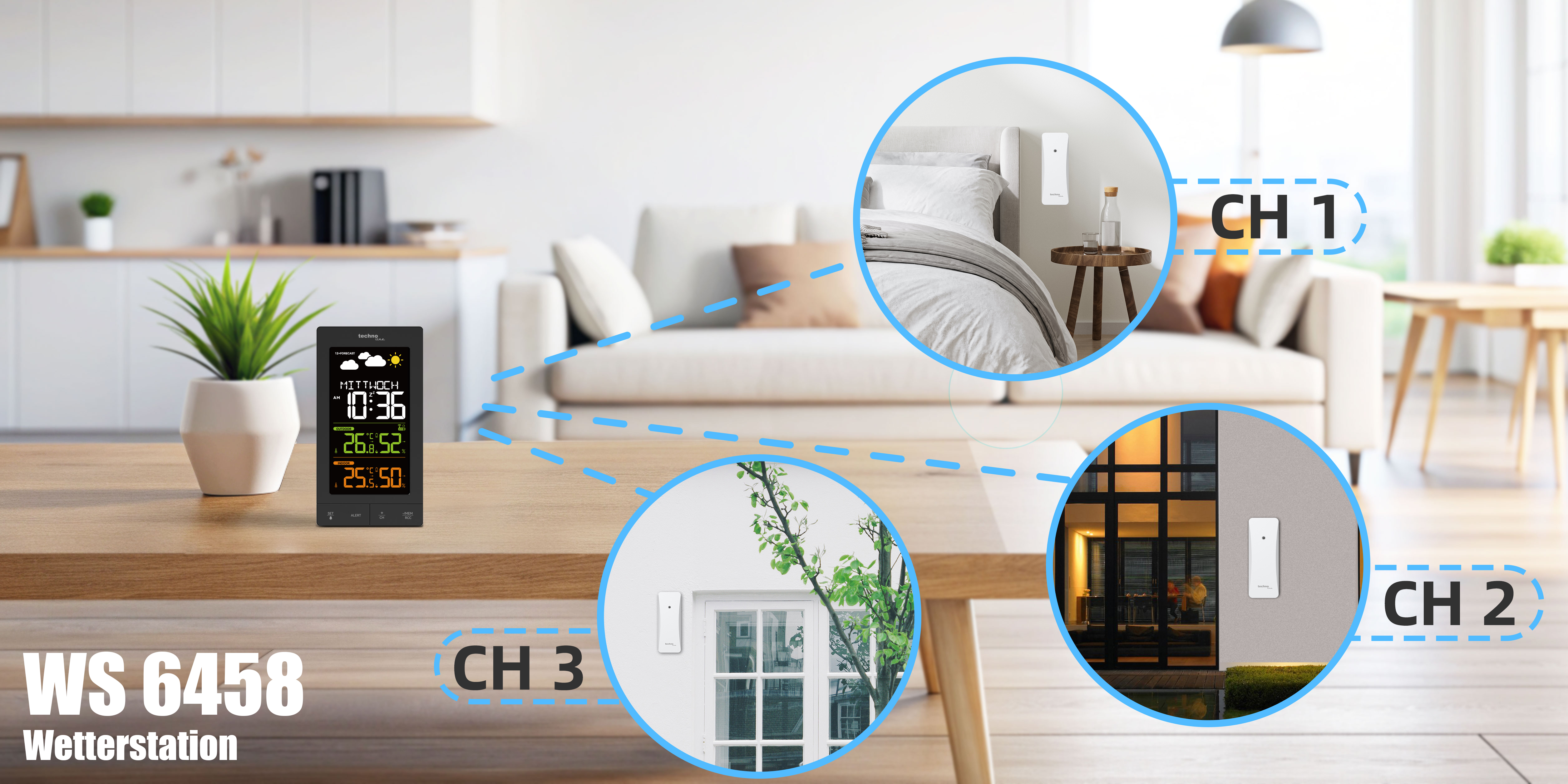 • Bis zu 3 Außensender anlernbar